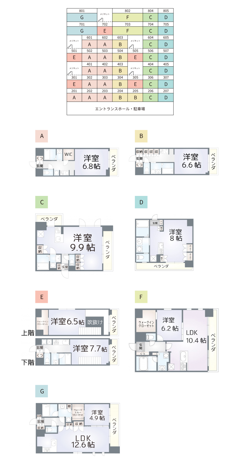 当マンションは6.6帖のコンパクトなワンルームからメゾネットタイプの1LDKまで、間取りの種類が豊富です。間取りはコンパクトでいいから家賃をおさえたいというお1人暮らしの方、カップルで住まわれる方、それぞれに合った間取りが見つかるかもしれません。