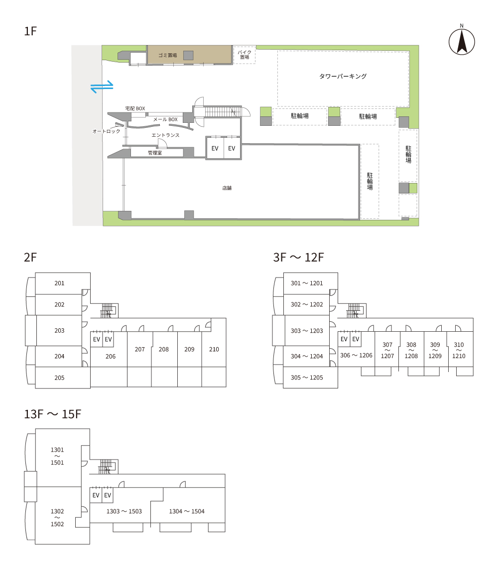 【共用設備】オートロック・宅配ボックス・エレベーター・敷地内駐車場・駐輪場・24時間ゴミ出し可