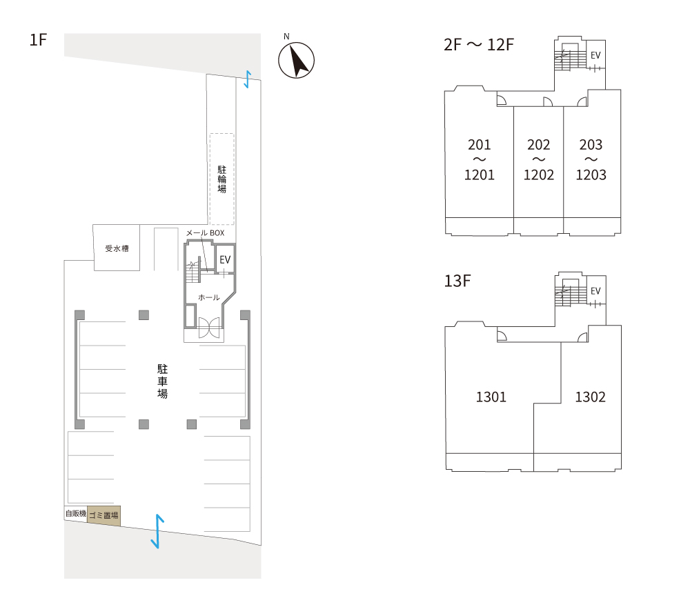 マンションの1Fが駐車場になっています。月額13,200円(税込)です。※空き状況はお問い合わせ下さい。