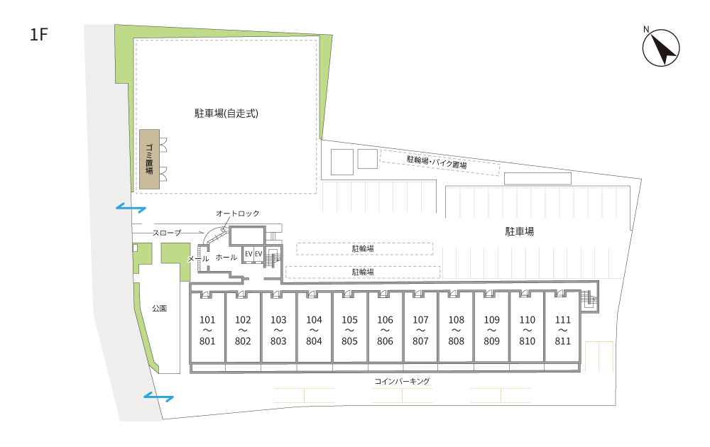 エントランスの隣に小さな公園があります。小さなお子様がいらっしゃる方は、ちょっと遊ばせたい時などに活用いただいています。