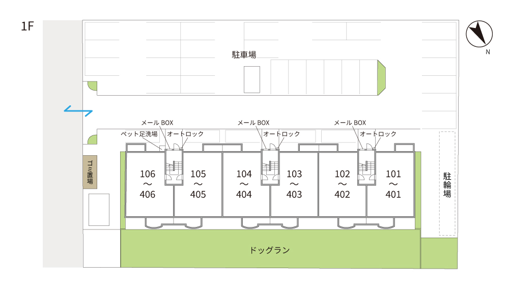 【共用設備】オートロック/敷地内ゴミ置場/敷地内駐車場/自転車駐輪場/中型バイク駐輪可能/原付駐輪可能/プロパンガス