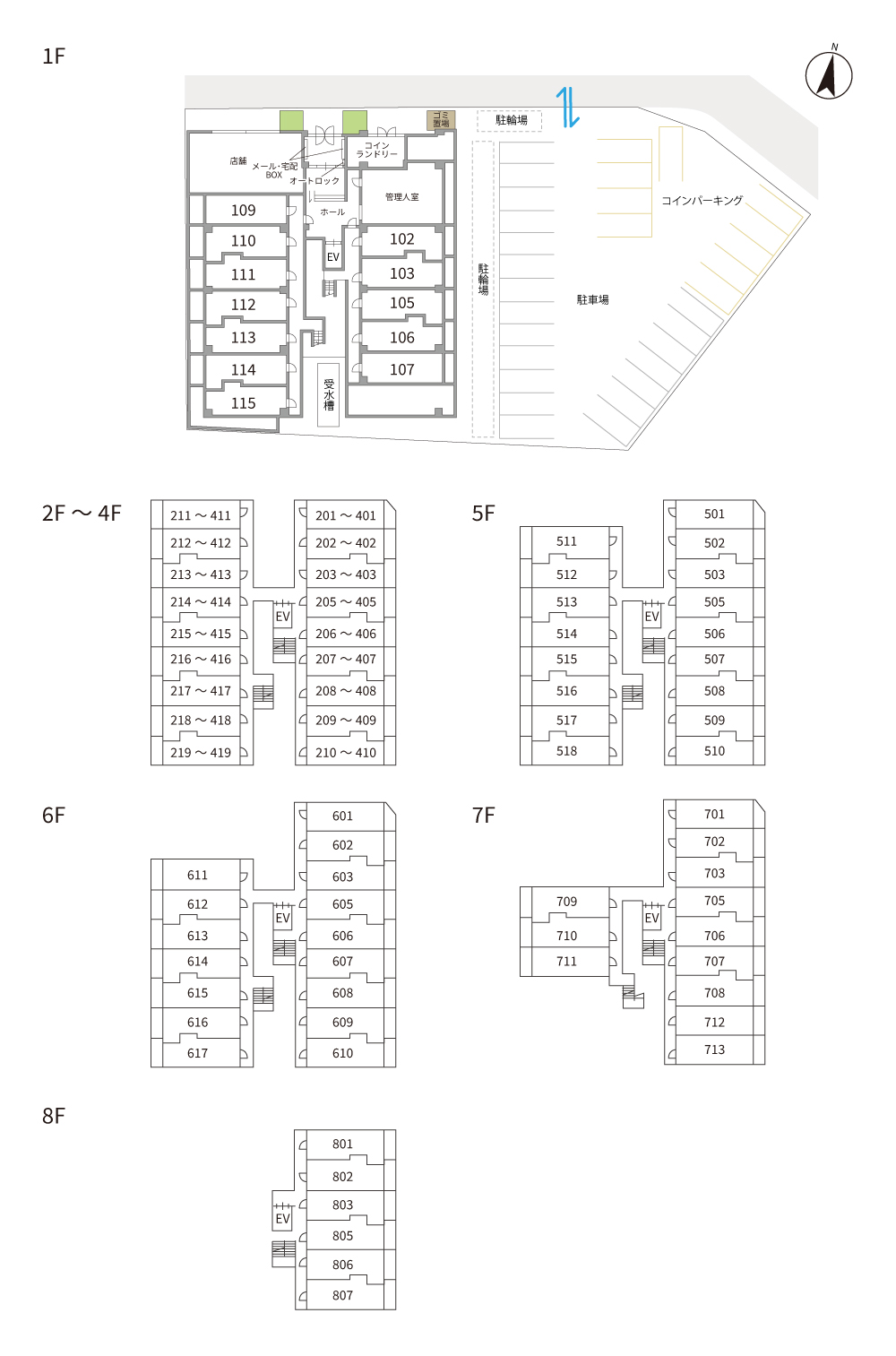 1Fにはコインラインドリーがあり、雨の日や大物の乾燥も便利ですね。