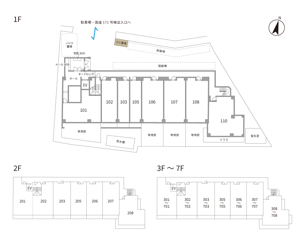 ファミリー向けに1LDK、2LDK、3LDKと3タイプ。室内設備も揃っており、Feロックキーでセキュリティも安心。※ピンチアウトで画面を拡大してご確認ください。