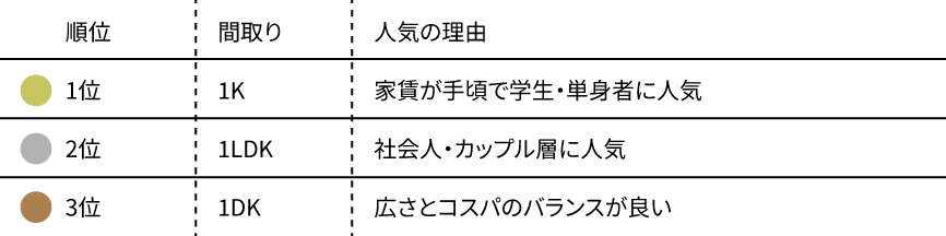 京都で人気の間取りランキング(ポポラート調べ)