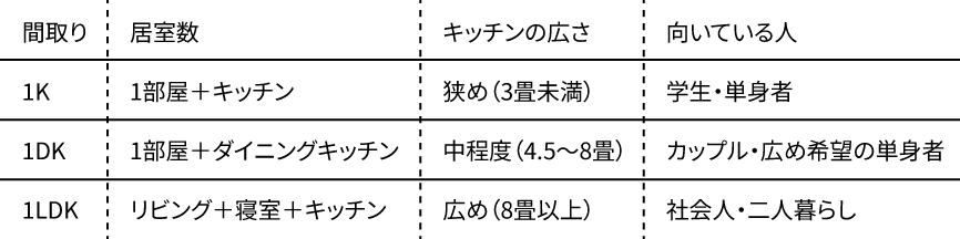 間取りの違いを理解しておくと、家賃・生活動線・快適さのバランスを上手に取ることができます。