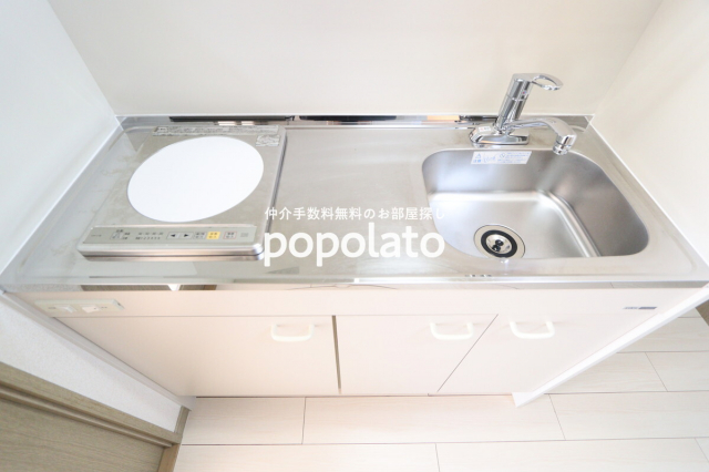 単身者用のお部屋に付いている、コンロ・シンクがセットされたコンパクトなキッチン。