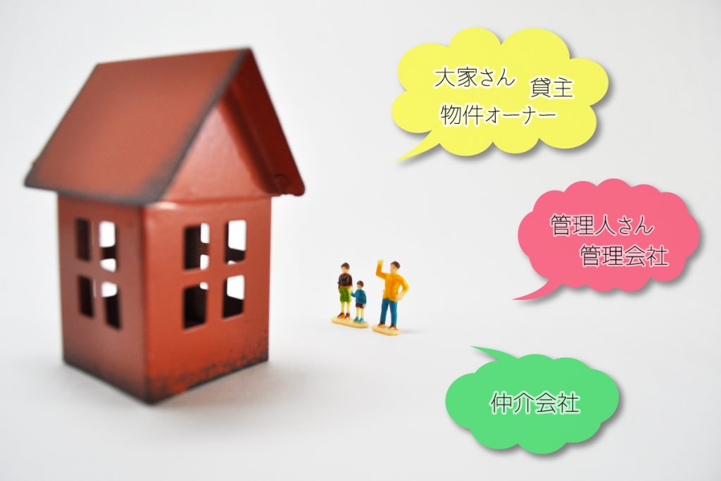 まず「賃貸物件を借りたい」と思った時にお客様が関わる3つを簡単にご説明しますね。