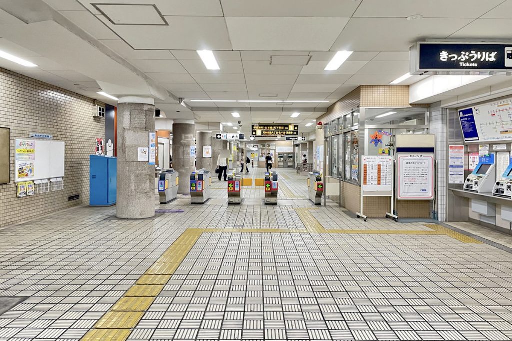 同心サワダハイツと駅の間の、駅側に商店街があるという位置取りです。駅向かうにつれてお店が増えていく感じですね。