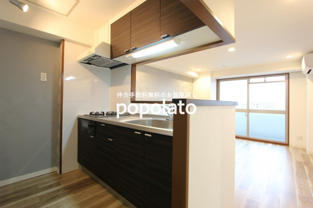・カウンターキッチンの2LDK(オール洋室)で掃除しやすく、シャンプードレッサー・追い焚き・2口ガス・エアコン3基付き。