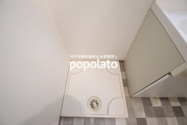 洗面所には、鏡裏収納のある大きな洗面台、洗濯機パンがあります。