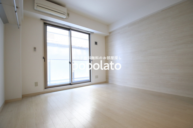 ソファもベッドも置ける広々12帖です。エアコン付き。