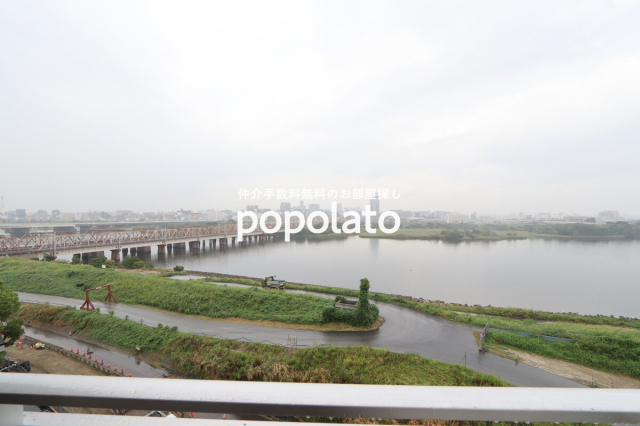 淀川沿いに建てられたマンションで、大きい吹き抜けの窓から見られる景色はとってもステキ!