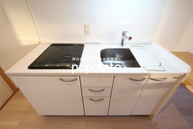 お部屋には2口IHシステムキッチンがあり、キッチン横にはカウンターも備えておりますのでお料理される方にも便利だと思います。