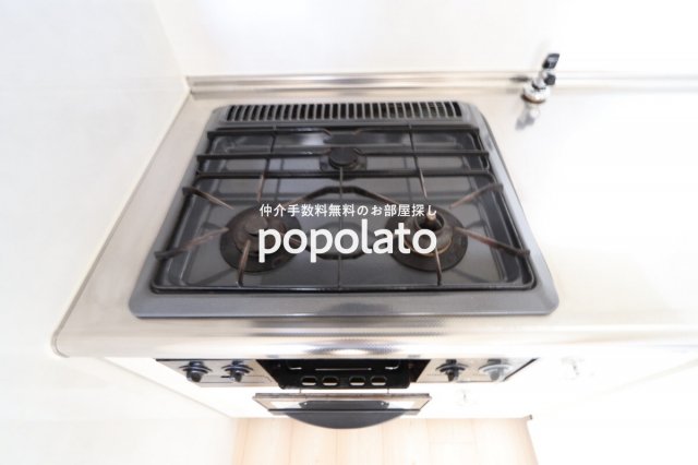 室内設備は温水洗浄便座、シャンプードレッサー、3口ガスシステムキッチン等がございます。キッチンはグリル付きで、お料理される方にもオススメです。キッチンには木目調のブラウンシートを貼り、オシャレな仕上がりになりました。