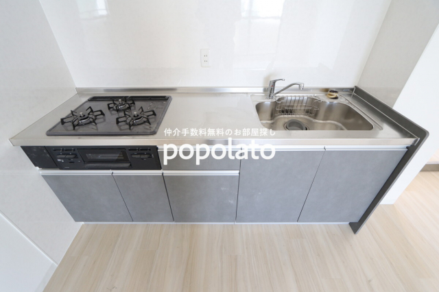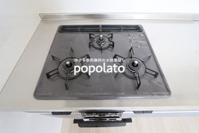 3口ガスコンロのシステムキッチン、独立洗面台、シャンプードレッサー、温水洗浄便座、モニター付インターホンなどなど設備整えています。