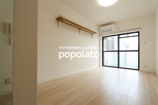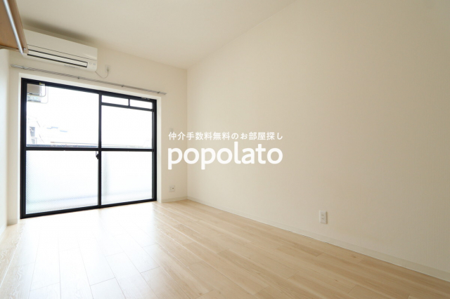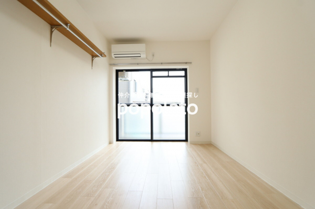 エアコン1基付き。ベランダに洗濯機置き場があります。