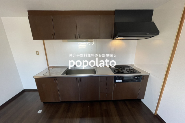 室内には3口ガスのシステムキッチンがございます。その他独立洗面台、温水洗浄便座、TVモニターインターホンなどの設備がございます。