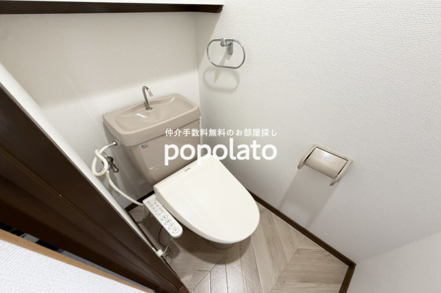 ・温水洗浄便座、室内洗濯機置場、ガスコンロ設置可キッチン付き。