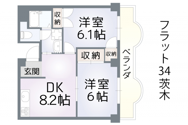 2K/2DK/2LDK(46m²)フラット34茨木302