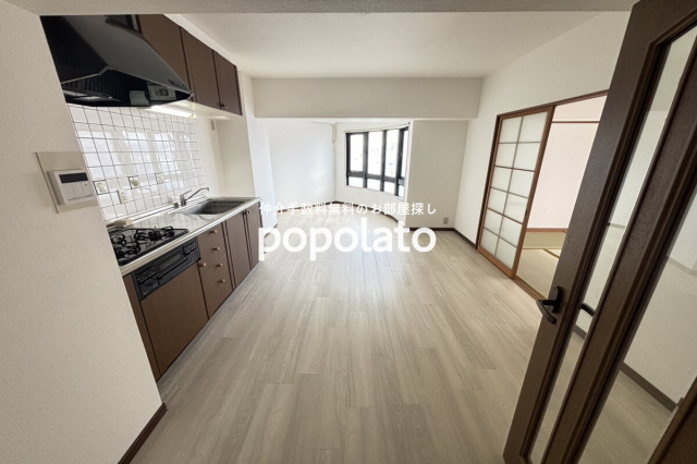 リビングは12.6帖と開放的な広さ、システムキッチンになっております。