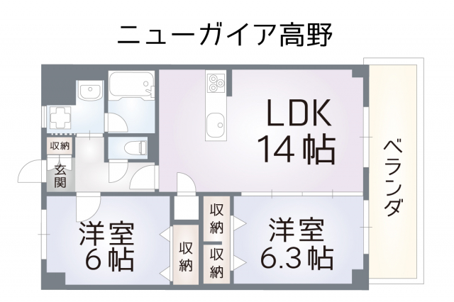 2K/2DK/2LDK(60.22m²)ニューガイア高野210