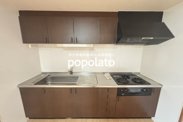 室内には3口ガスのシステムキッチンがございます。その他独立洗面台、TVモニターインターホンなどの設備がございます。