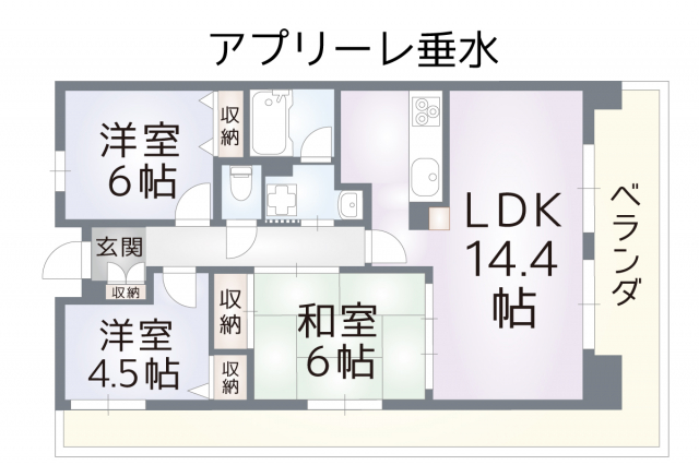 特に14.4帖のリビングは使いやすく、家具家電の配置がしやすい長方形となっています。