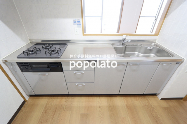 室内設備はシャンプードレッサー、追い焚き機能付きバス、3口ガスシステムキッチン、エアコン、モニター付きインターホンと充実していますよ。