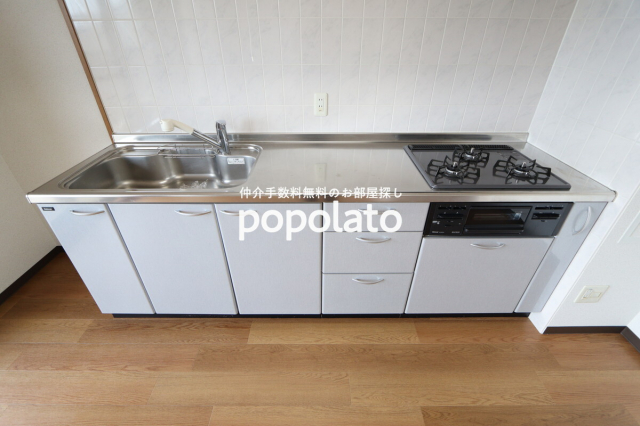 室内設備はシャンプードレッサー、追い焚き機能付きバス、3口ガスシステムキッチン、エアコン、モニター付きインターホンと充実していますよ。