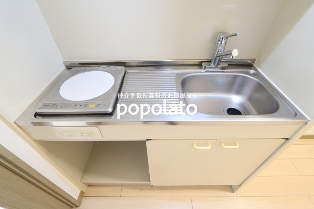 バス・トイレ別、室内洗濯機置き場となっております。トイレは温水洗浄便座です。キッチンは1Hの1口キッチンです。