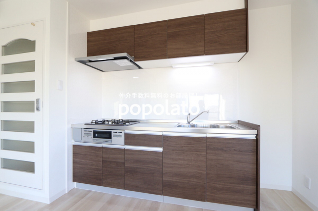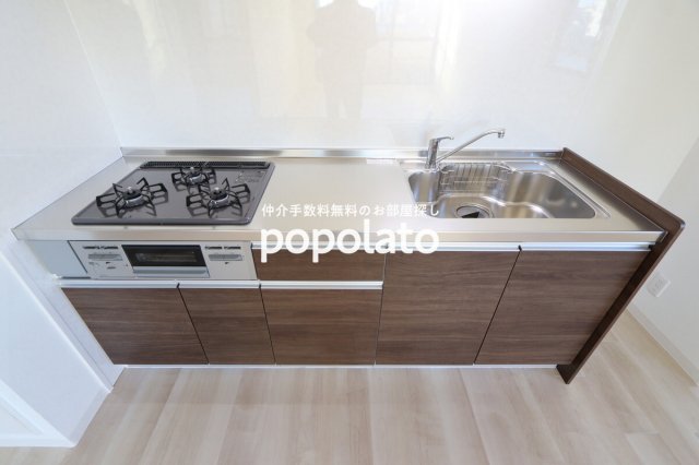 洗面台はおおきいシャンプードレッサーを設置、ッチンは3口ガスのシステムキッチンです。お料理も捗ると思います。インターネット無料、エアコンあり。