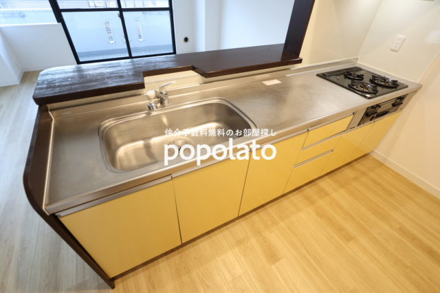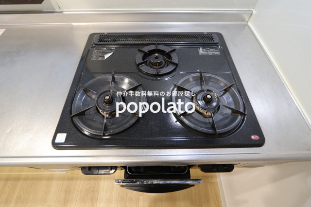 キッチンは3口ガスシステムキッチンで幅広タイプ、とても料理が捗りそうです。カウンタータイプですので、小さいお子様がいらっしゃるご家庭にもオススメ!お子様の様子を見ながらお料理していただけます!