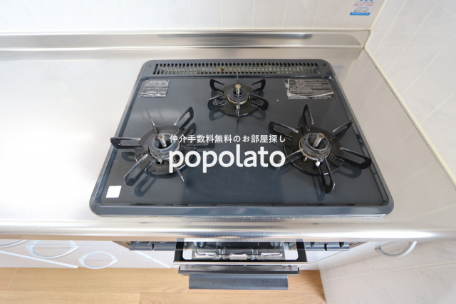 ・追い焚き、3口キッチン、オートロック、公園、宅配ボックス、エレベーター2基、駐車場あり。