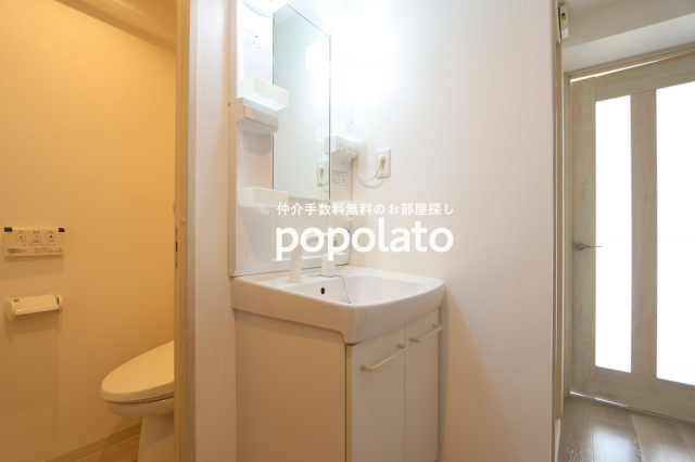 お部屋はユニットバスから3点セパレートにリノベーションいたしました。独立洗面台を設置し、温水洗浄便座も取り付けました。